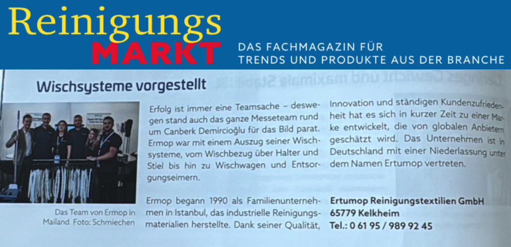 '' Success is always a team effort. With this understanding, ERMOP made a strong appearance at the fair together with the entire team under the leadership of Canberk Demircioğlu. At its booth, the company showcased selected examples from its wide product portfolio – from mop covers, holders and handles to professional cleaning trolleys and waste bins – presenting visitors with the industry’s most innovative solutions.
